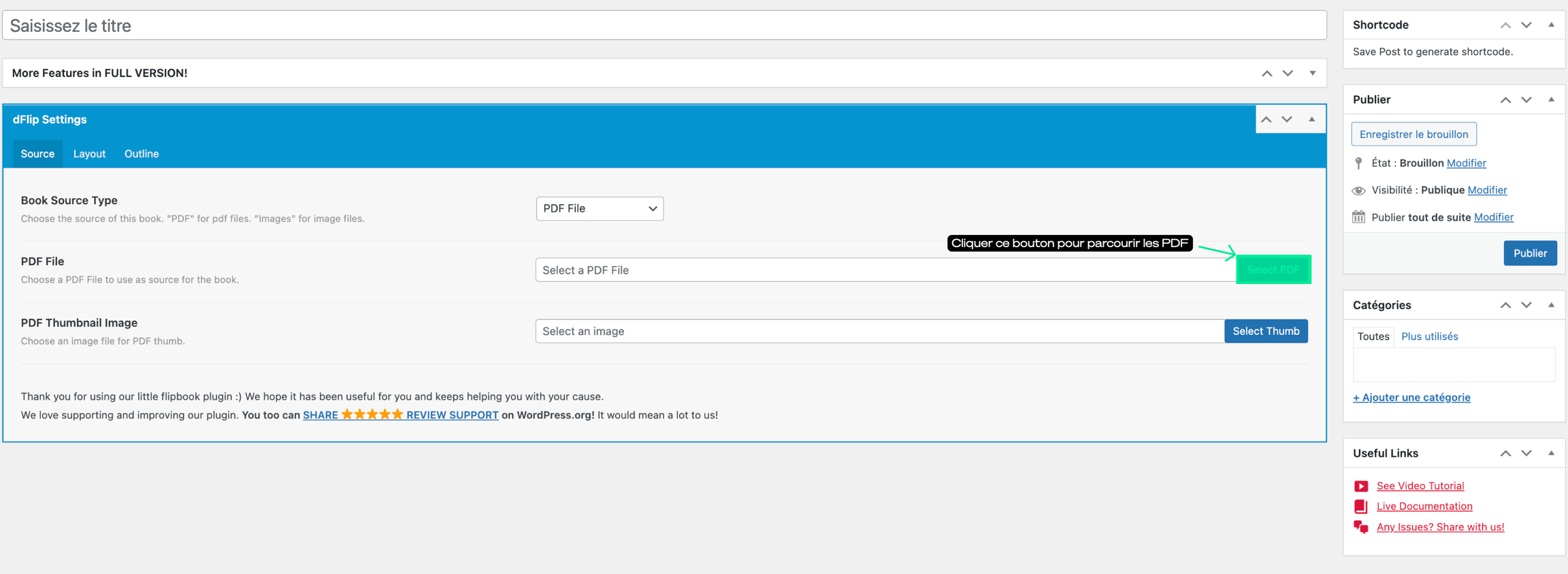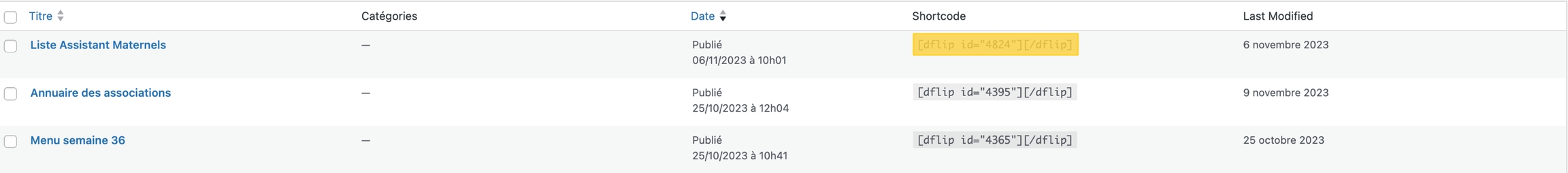 Une fois que vous avez créé votre flipbook, le plugin dFlipBook vous fournira un shortcode unique pour l'afficher sur votre site. Copiez ce shortcode.