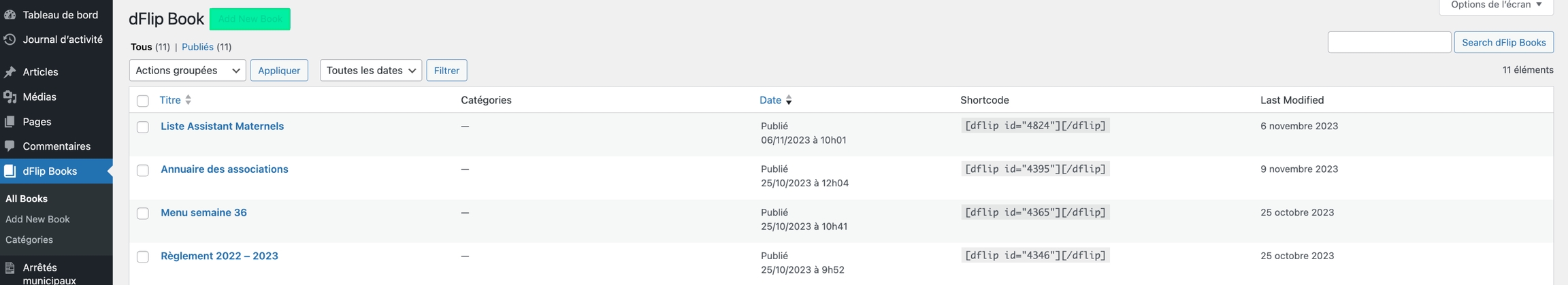 Parmi la liste des flipbook existant, sélectionner le flipbook souhaitée.
