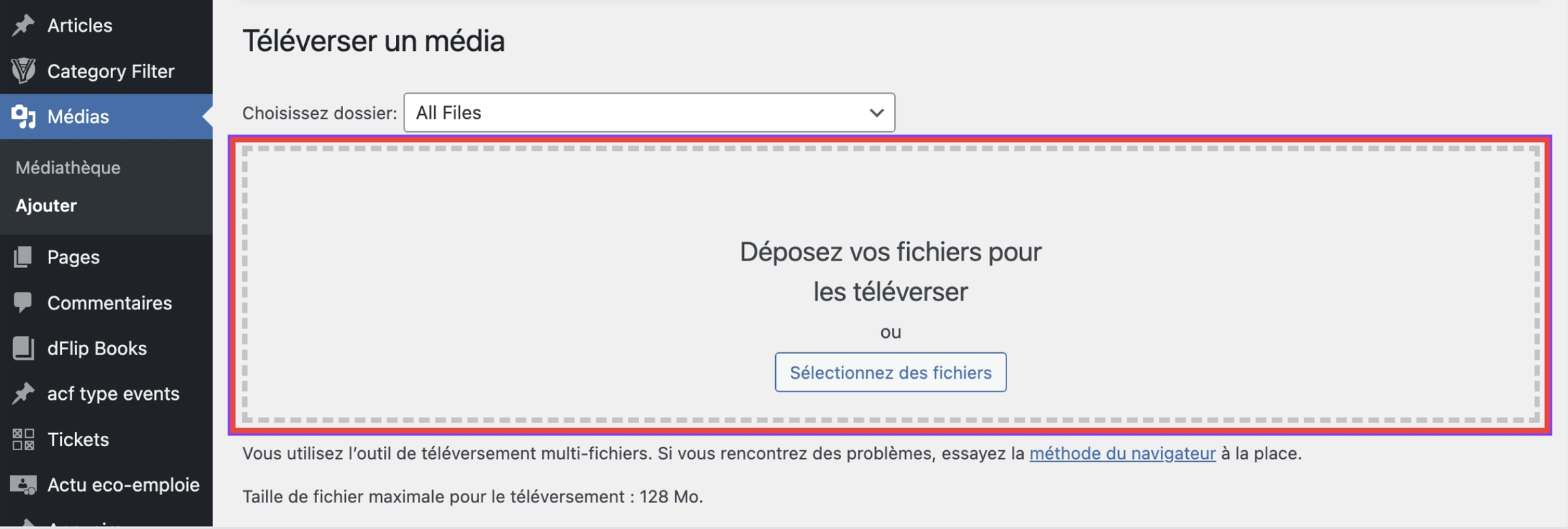 Une fois le téléchargement terminé, le PDF sera ajouté à la médiathèque de WordPress.